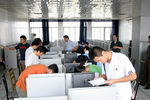 当记者跟随魏经理一行来到计算机工程系办公室时,办公室对面的教室里10余位教师正专心地进行《计算机维护与维修技能大赛理论考核》的书面答题,这是他们此次竞赛的理论考试环节。虽然试题很多,但大家都在规定时间内迅速地完成了解答。理论考试结束后,他们来到机房,开始计算机安装的现场操作。