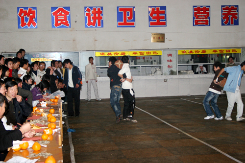 本网讯(实习记者 刘鹏 员工记者 薛茸 王彦璋)11月30日晚,第一餐厅欢声笑语、热闹非凡,计算机工程系一场别开生面的娱乐晚会在此上演。晚会中穿插了单腿花样接力、海底传月、双人挟球等一系列趣味无穷的小比赛,这些小比赛将现场推向一轮又一轮高潮。