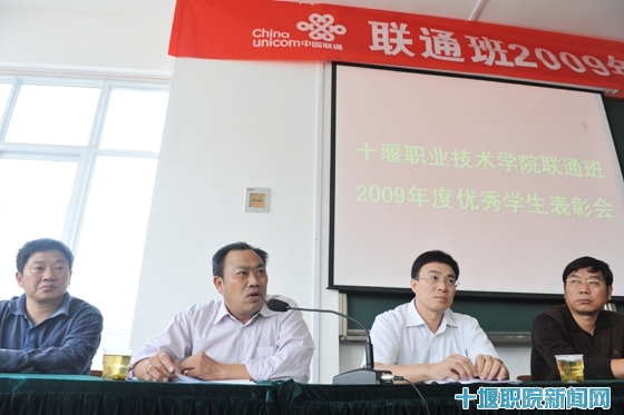联通公司十堰分公司副总经理姚楚平说,此次表彰仪式标志着中国联通十堰分公司与十堰职院的战略性企校合作迈向了一大步,这种企校合作、订单式培养、实现优势互补、零差距就业的联合办学模式在实践中得到了验证。他高度评价了“联通班”员工刻苦学习、积极实践、吃苦耐劳的精神品质,对十堰职院“联通班”的人才培养水准给予赞扬。他鼓励同学们说,随着全面开展3G网络业务发展,公司需要大量的人才充实到公司团队,同学们一定大有可为。