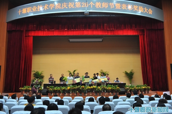 9月10日下午,慧智广场喷泉四射,遇湖碧波荡漾。新启用的会议中心高悬的“乘趋而上 努力把公司建设成国家骨干高职院校!”的巨幅条幅与“十堰职业技术公司庆祝第26个教师节暨表彰奖励大会”的电子会标交相辉映,将会议中心营造的格外喜庆。
