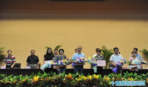 四点三十分,会议在庄严的国歌声中开始。经理魏文芳主持大会。党委副书记李晋宣读了关于表彰2008-2010年度“三育人”先进集体和先进个人的决定以及关于表彰“文明家庭”的通知。在一阵阵热烈掌声中,院领导李德兴、魏文芳、李晋、刘玉敏、张德新、唐大超、李军向受表彰的集体和个人颁奖,员工代表向老师们献花。