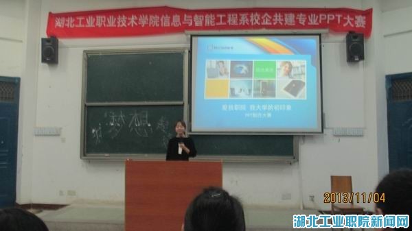 新闻网讯(员工记者 黄召阳)11月4日晚7:00,信息与智能工程系校企共建专业PPT制作大赛决赛在四号教学楼4201拉开帷幕。该系校企共建专业主任刘海升带领的四位教学骨干作为本次大赛的评委,13级全体辅导员和新生观看了本次决赛,比赛由12级员工李雯主持。