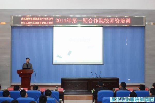 新闻网讯(通讯员 黄召阳)1月6日上午,信息与智能工程系与武汉美斯坦福信息技术有限公司联合举办的“2014年第1期合作院校团队认证培训”开班典礼,在院科技楼学术报告厅隆重举行。系主任夏德洲、党总支书记莫足琴,武汉美斯坦福公司副总经理张永龙、校企共建专业主任陈方亦,该系全体教师出席了本次活动。来自襄阳职院、长江职院、岳阳职院、荆州理工职院等八所高职院校共建专业的骨干教师共计50余人参加本次培训,开班典礼由信息与智能工程系校企共建专业老师肖海霞主持。