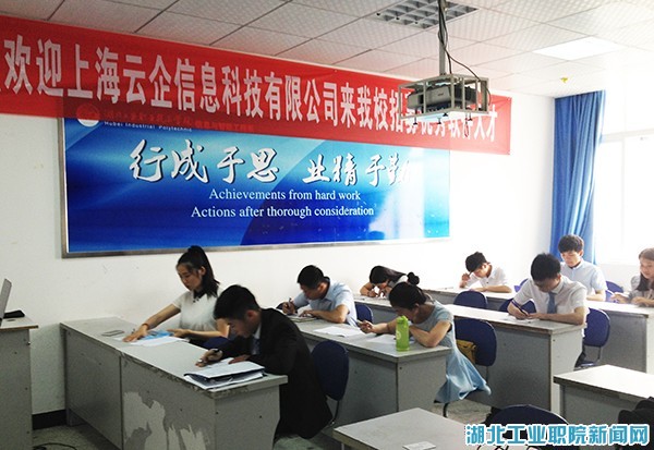 新闻网讯(通讯员 熊慧)员工身着职业装、手持简历,自信大方地候场,准备迎接人生第一次顶岗实习面试……5月25日上午8时,以上海云企信息有限公司的总经理胡燕飞及技术总监王彬彬,武汉源启科技有限公司实施部门经理石瑞和人事专员耿娜为主的招聘小组来到信息与智能工程系校企共建专业进行了现场招聘会。此次招聘的岗位是.NET开发和软件实施,预计招收20名员工,该专业.NET加强班和软件实施加强班的员工积极应聘,并当场进行了技术笔试题的测试和现场的技术面试。