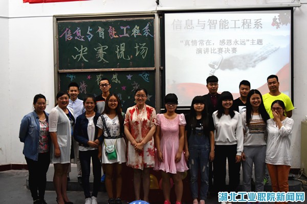 新闻网讯(员工记者 向青 谢海鸥)为弘扬传统美德,让同学们心怀感恩之心,5月31日晚六点半,信息与智能工程系在四号教学楼4101教室举办以“感恩”为主题的演讲比赛。该系党总支书记莫足琴、校企共建专业学工办主任曹艳及辅导员和该系大一员工、员工干部观看了本次决赛。