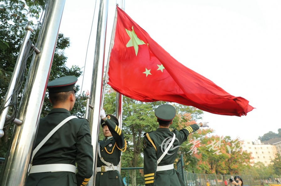 早上7时许,随着雄壮国歌声响起,鲜艳的五星红旗随风缓缓升起。
