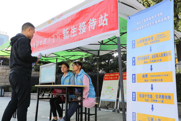 上午10时40分,22岁的新生陈世豪刚从武汉的飞机下来,便急急从机场赶往报到现场。他在武汉某高校读自考,一直希望有机会获得统招大专学历。问及报考原因,他笑着说:“虽然武汉的职业院校也有扩招政策,但没有我青睐的专业。综合公司实力,我报考了湖工职院的电子商务专业,希望毕业后能从事淘宝、自媒体方面的职业。”上午11时,30岁的退役军人王房郧来到报到现场,他说:“高中阶段入伍,尽管错失了最好的读书时光,但在部队锻炼了五年,学到了很多。这次高职扩招,国家对我们退役军人免收学费,我会好好珍惜此次读书机会。”