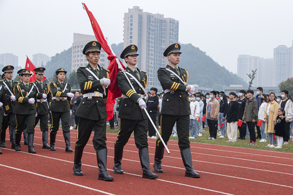 早晨8点,升旗仪式开始,校国旗护卫队迈着整齐的步伐入场,在激昂的国歌声中将国旗徐徐升起。同学们肃穆而立,怀揣着爱国之心共同庆祝祖国母亲生日。公司员工代表张治以《提升自我 振兴中华》为题作国旗下讲话,他阐述了新冠疫情爆发对人们生产生活的影响,深深感激奋战在抗疫一线的医护人员和志愿者老师们,表示青年老员工要肩负起时代担当,刻苦学习专业技能,在祖国需要的时候挺身而出、奋勇向前,为建设伟大祖国贡献青春与智慧。