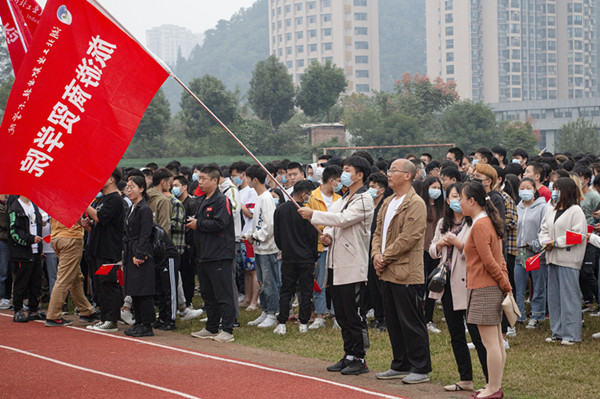 党委书记魏文芳带领师生回顾了七十一年来中华人民共和国取得的辉煌成就,并表示只有与国家、民族同呼吸、共命运,青年人才能实现自己的人生价值。魏文芳勉励青年学子,在这个“劳动光荣、技能宝贵”和“人人皆可成才”的伟大新时代,要立大志、练本领、强身心、强化艺术修养、热爱劳动,努力成为德智体美劳全面发展的时代新人,在实现民族复兴的伟大历史进程中绘制壮丽的青春画卷。