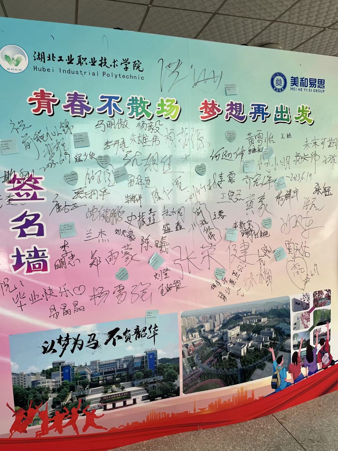 毕业祝福,青春永驻。公司精心准备了签名墙和由毕业生登记照组成的照片墙,饱含着公司对毕业生的挂念与关怀,同学们纷纷驻足签名、合影留念,为毕业季的校园文化再添一抹青春励志的靓丽色彩。2020级辅导员李阳露老师为所带班级103名员工亲手写下明信片,将员工的名字融入其中,化作祝福。收到这样一份特殊的礼物,员工们感动不已,纷纷表示会珍藏这份特别的祝福。
