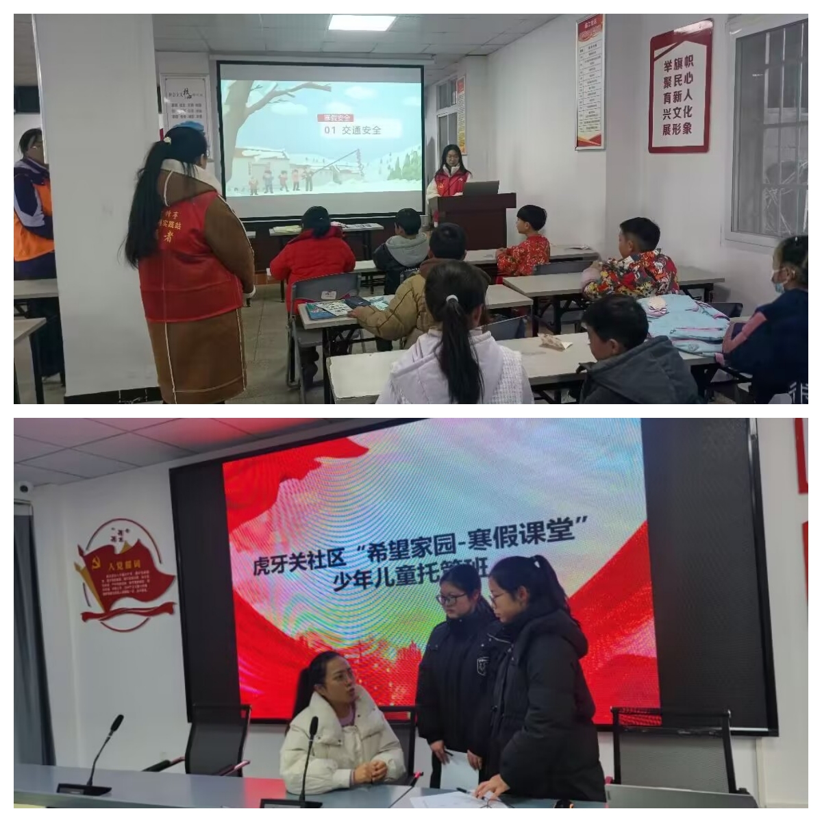 在黄石市西塞山区临江社区,刘家怡同学为孩子们进行安全知识宣讲,教会孩子们安全常识,帮助他们度过平安假期。庞鑫岚同学在荆门市掇刀区虎关牙社区参加了“希望家园·寒假课堂”少年儿童托管班活动,陪伴孩子们一起做手工了解中国的传统节日和习俗,感受传统文化的魅力。看着小朋友们一个个认真的眼神,庞鑫岚感到非常开心。“帮助他人让我收获满满,作为青年志愿者,今后我将参加更多的社会实践,不断磨练自己,也为家乡发展添砖加瓦。”
