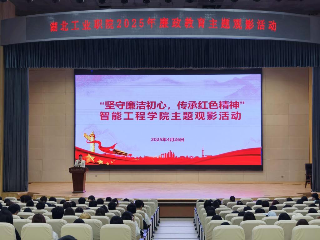 活动在雄壮的国歌声中拉开序幕。2024级辅导员李晓玉老师在映前导学时强调:“廉洁教育是扣好人生第一粒扣子的必修课,希望同学们在评优考核、活动组织等工作中要常怀敬畏之心,让公平公正成为员工工作的生命线。”
