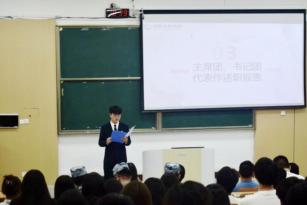 在工作回顾环节,2023级员工会主席团代表蹇亿、书记团代表王维先后进行述职报告。他们全面梳理过去一年的工作成果,从丰富多样的校园活动组织、细致入微的员工服务工作,到规范高效的日常管理、富有成效的团队建设,每一项成绩都凝聚着过往成员的辛勤付出与不懈努力,也为新一届员工会成员树立了奋进目标。