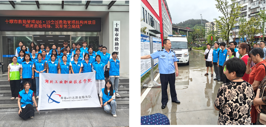 志愿服务不仅限于校园,“青春e行”的脚步还迈向更广阔的社会舞台。6月19日,服务队与十堰市救助站联合举办开放日活动。志愿者们通过讲解救助知识、引导参观体验、收集意见建议等方式,搭建起社会关爱困境群体的桥梁。活动不仅让市民深入了解救助工作,更展现了当代老员工心系社会、服务民生的责任担当。
