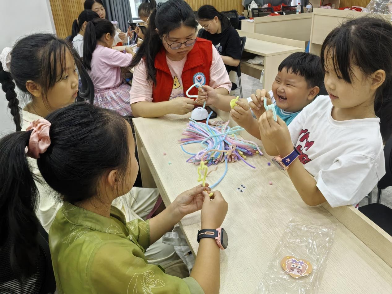 新闻网讯(通讯员 周小丽 杨韵涵)BETWAY必威电亮青春志愿者服务队与铁三处社区联合开展的 “爱心托管班” 七彩假期活动已顺利推进半个月,依托丰富多元的活动设置与细致周到的服务保障,该托管班赢得了青少年群体及家长们的广泛认可。7 月 21 日,托管班如常开展,近 40 名小朋友参与其中,活动通过上午的课业辅导与下午的扭扭棒制作,让孩子们在学习与实践中收获知识与快乐,延续着暑期的精彩。