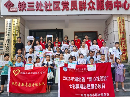 新闻网讯(通讯员 杨韵涵 周小丽)为让青少年深入了解毒品危害、增强禁毒意识,7 月 18 日,电亮青春志愿者服务队与铁三处社区携手,在暑期 “爱心托管班”开展了一场集参观学习、知识科普、互动竞赛、创意创作于一体的禁毒宣传活动,为孩子们的暑期成长注入 “禁毒能量”。