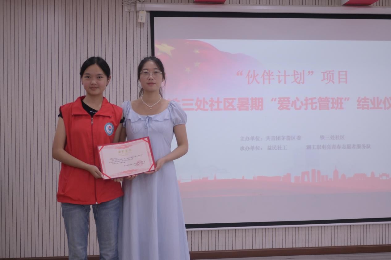 新闻网讯(通讯员 文/周小丽 图/刘欢 高腾飞)为深入贯彻落实为民办实事的服务宗旨,切实解决社区居民子女暑期托管难题,电亮青春志愿者服务队联合铁三处社区持续开展了为期一个月的暑期“爱心托管班”七彩假期志愿服务项目。课程涵盖暑期防溺水、红色精神宣讲、非遗手工课、心理健康讲座、无人机飞行等七大主题。7月31日,服务队在铁三处社区顺利举行“爱心托管班”结班仪式。